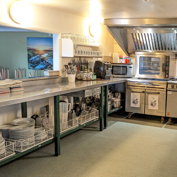 West Barn- Large self Catering Kitchen, Dining room, Huge activity room with wood burning stove, ping pong tables, sink. 3 gender neutral toilets and 2 showers