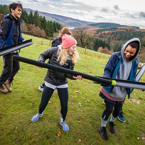 Lockerbrook has a wide variety of team-building equipment with instructions you can hire for a minimal charge (free to Woodcraft Folk groups). Whether you want to do a blindfolded walk through the woods, a giant marble run through the courtyard using guttering and tennis balls or use planks to get across the shark infested river, we have everything you need to keep your group happy and engaged. Just tell us the ages of the group and we can advise you which activities would be appropriate.